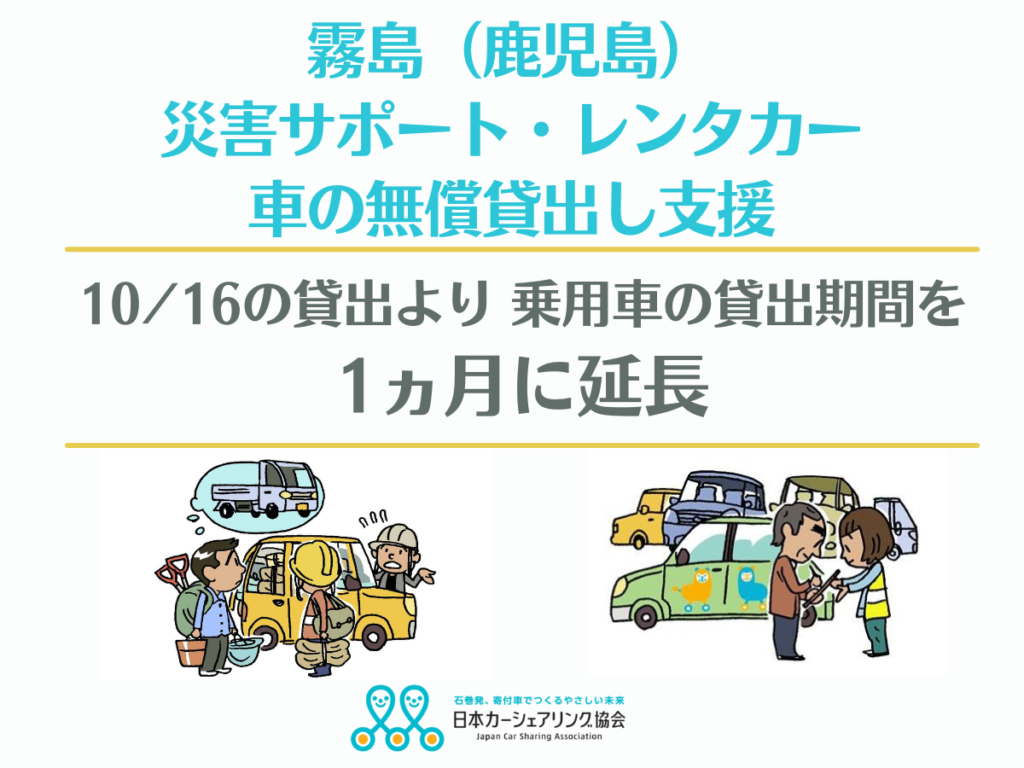 鹿児島豪雨で被災された方、支援活動を行う団体を対象に車の無償貸出支援『災害サポートレンタカー』を鹿児島県霧島市内に拠点を設置し申込受付を開始します。