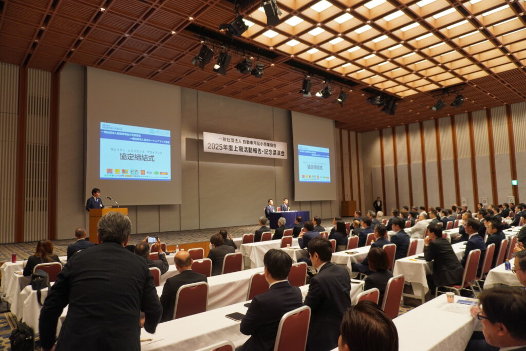 この日は、東京都の経団連会館にて自動車用品小売業協会様の2025年度上期活動報告・記念講演会が開催され、多くの正会員様、賛助会員様がご参列される中で協定締結を行いました。