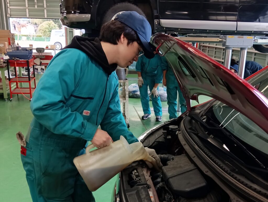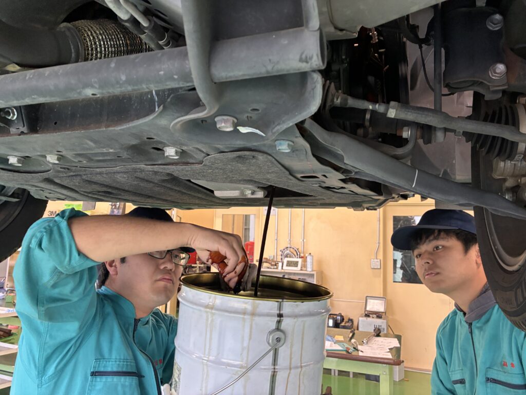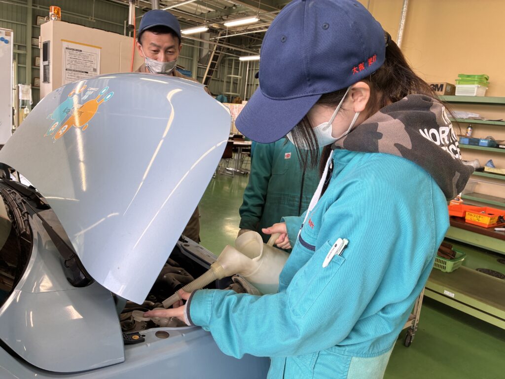 「今回で4回目の整備プロジェクトとなり、去年よりレベルアップした状態で臨めました。タイヤ交換やオイル交換をスムーズかつ正確に行えたと思います。来春から整備士として働く予定なので、この経験を活かしていきたいです。」