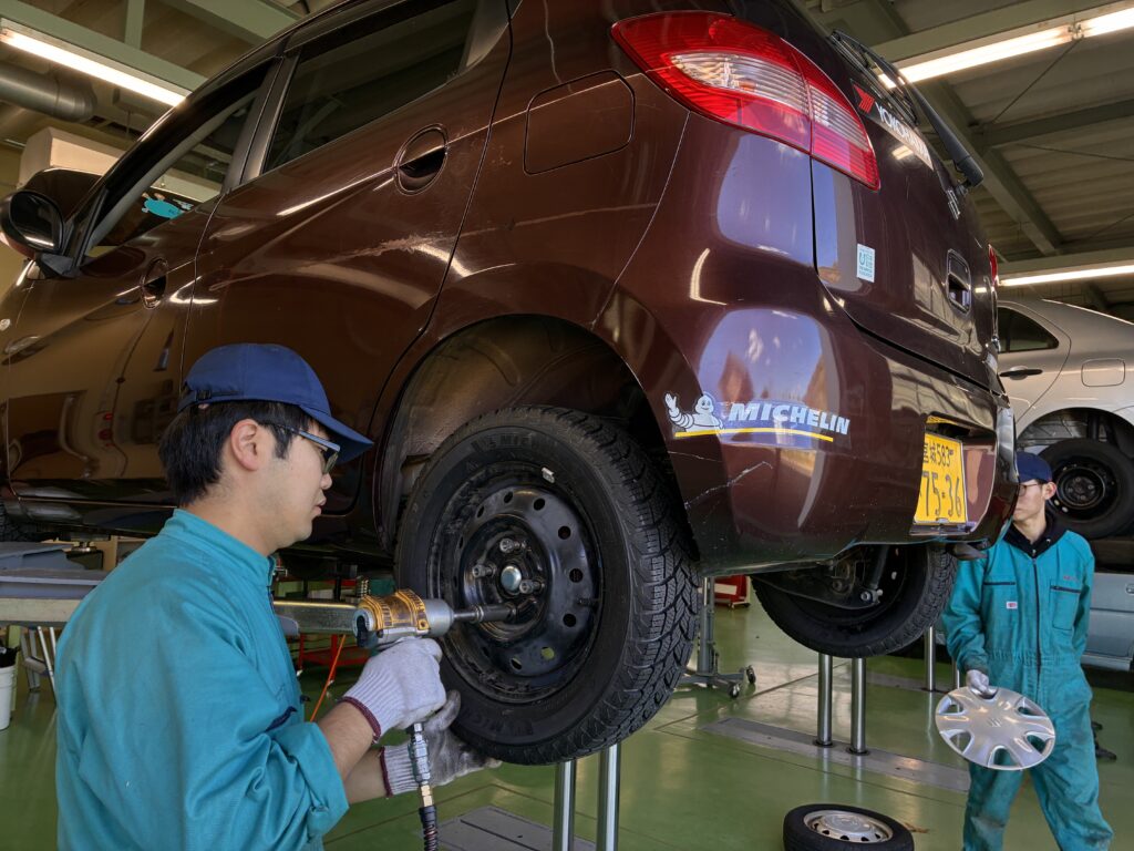 ノーマルタイヤからスタッドレスタイヤへの交換を中心とした整備を行っています。