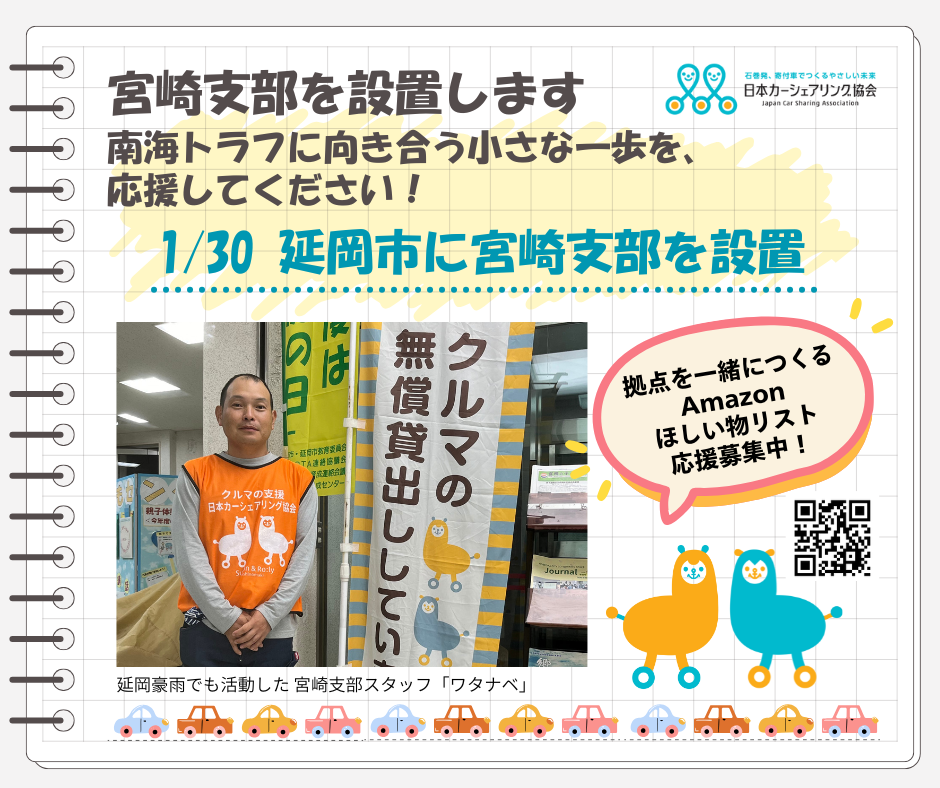 1月30日、延岡市に日本カーシェアリング協会 宮崎支部を設置します。