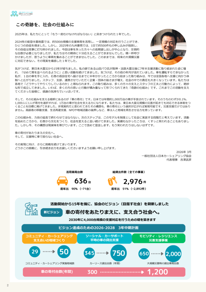 東日本大震災から15年の協会の歩みや九州豪雨支援の特集ページをはじめ、協会が実施した活動について、関わった方々やスタッフの声とともにまとめています。